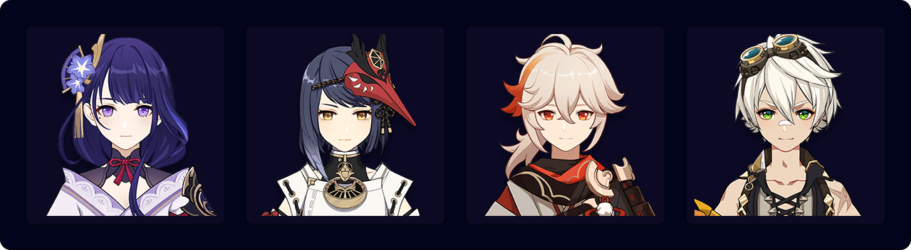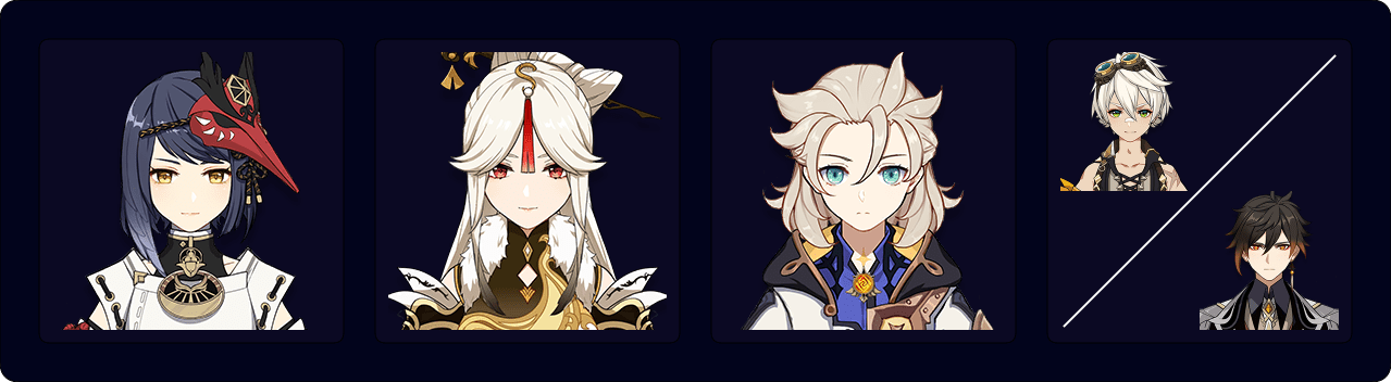 Sara — Ningguang — Albedo — Bennett/Zhongli