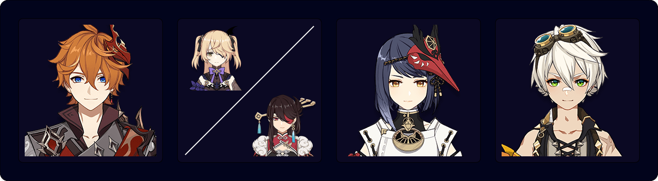 Tartaglia — Beidou/Fischl — Sara — Bennett