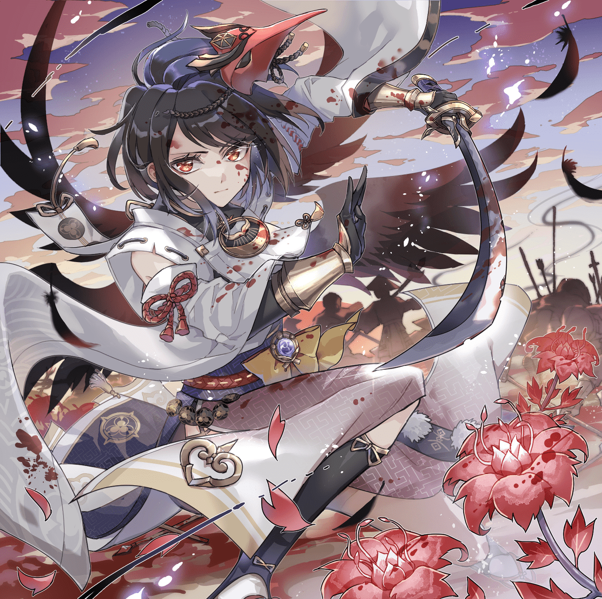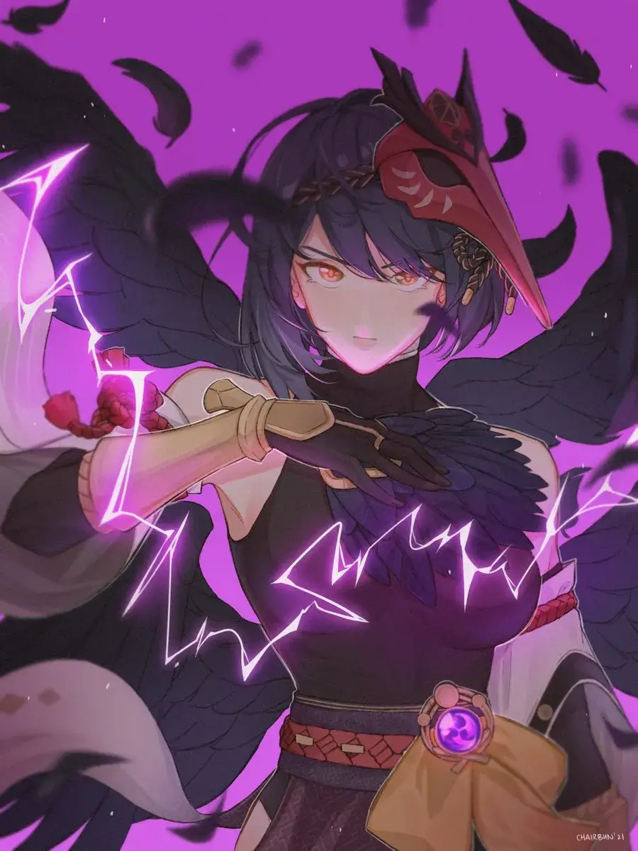 “Kujou Sara may have forsaken the arrogant life of the tengu race, but she has never neglected their brilliance with the sword or their supernatural might.”
