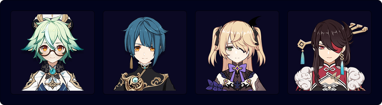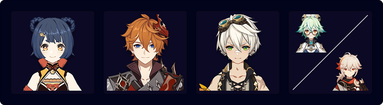 Xiangling — Tartaglia — Bennett — Sucrose / Kazuha