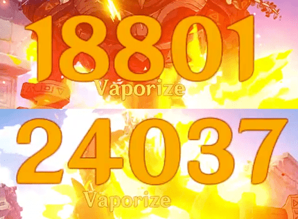 Sucrose can perform a mechanic referred to as “Guoba Swirl”. If Sucrose uses her Skill while Guoba is about to shoot fire (when Guoba has an exclamation mark over its head), she can Swirl Pyro off of Guoba onto nearby enemies. You can also see when Guoba is affected with Pyro if you use Elemental Sight, which will show Guoba turning red to indicate he is infused with Pyro. This can be used to activate chain reactions while not requiring a Pyro aura to be present on enemies. This is used to proc both Overloaded and Vaporize chain-Swirls, allowing Sucrose to deal considerable damage. With Sucrose on 4VV, Guoba Swirls also Shred Pyro RES on enemies hit by the Pyro Swirl.