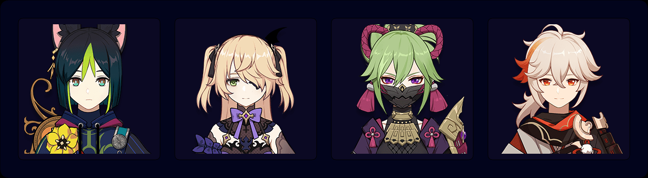 Tighnari – Fischl – Kuki Shinobu – Kaedehara Kazuha