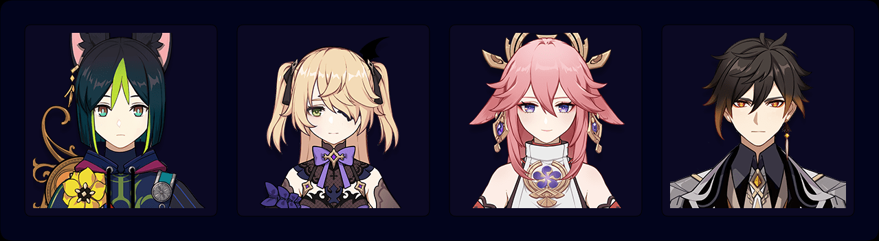Tighnari – Fischl – Yae Miko – Zhongli