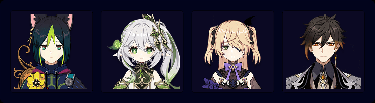 Tighnari – Nahida – Fischl – Zhongli