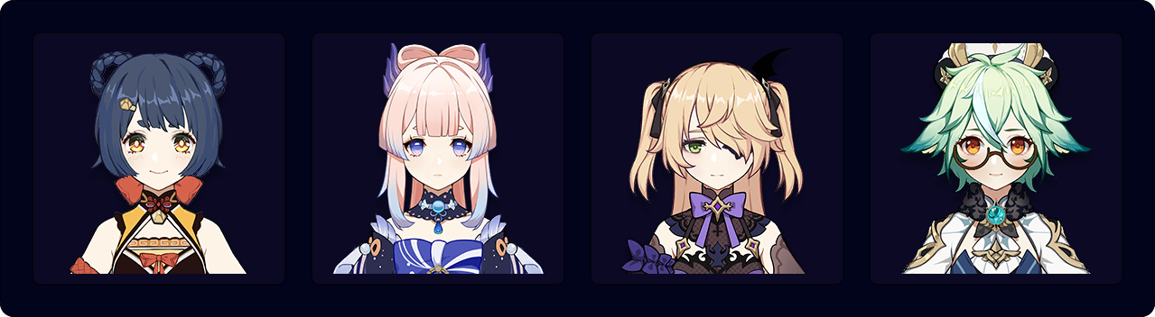 For help with analysis of Klee and pure Pyro, jamie#9248, Childe teams, Mystathi#9705, Traveler (Anemo, Dendro and Electro), Rathalos#2875, Hu Tao and Yelan teams, jstern25#1399, and Kokomi Burgeon teams, Silvershine2#5439.