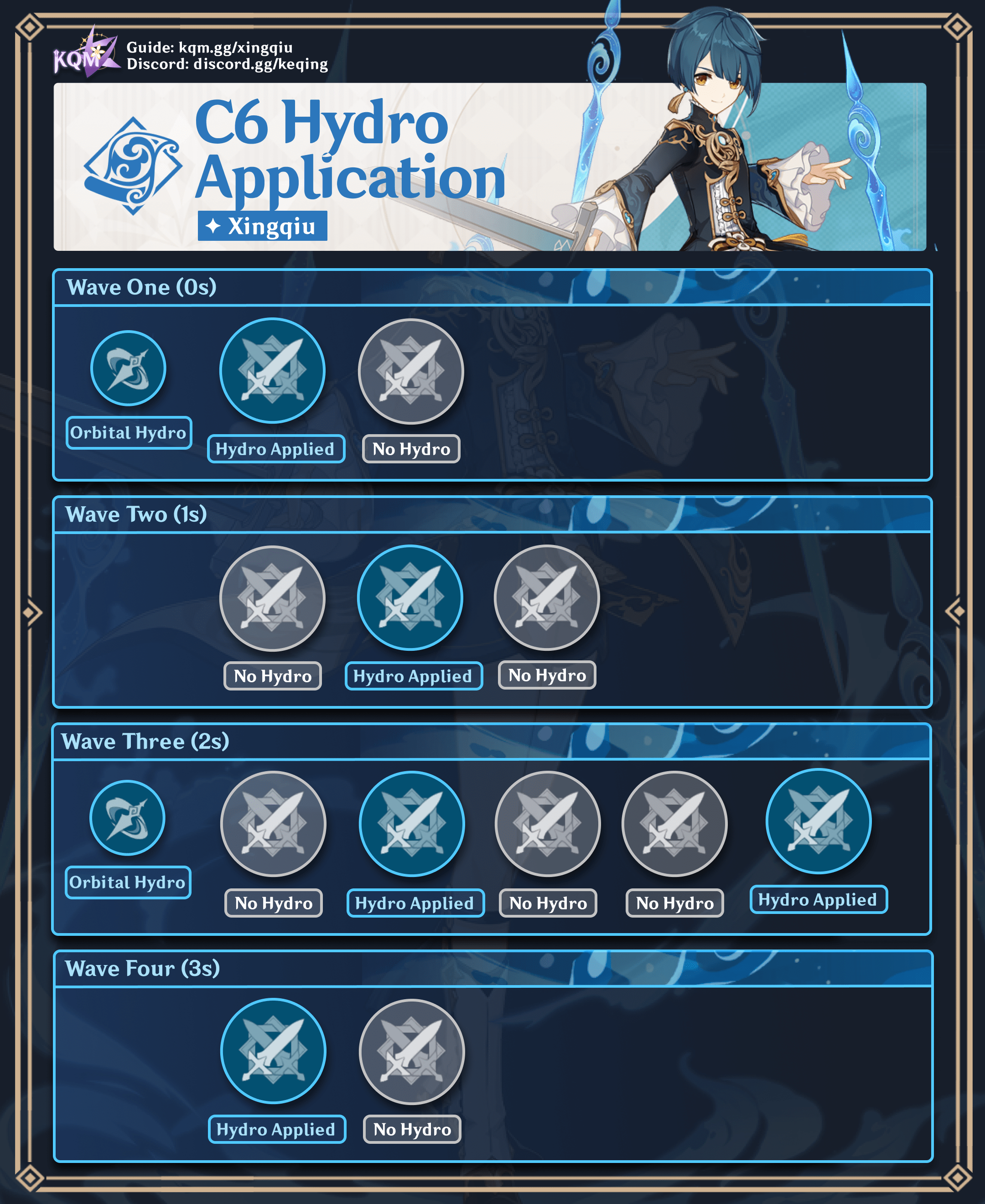 Lastly, they apply Hydro to Xingqiu upon cast and to enemies in melee range once every ~2s.