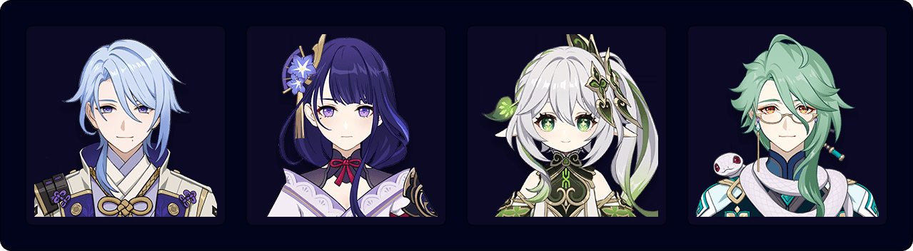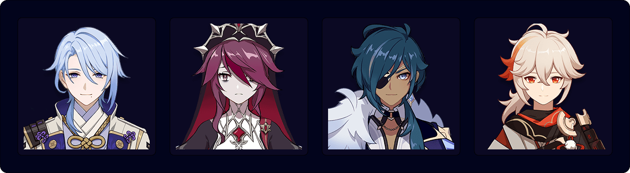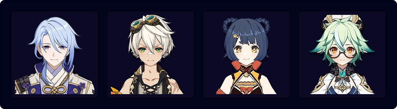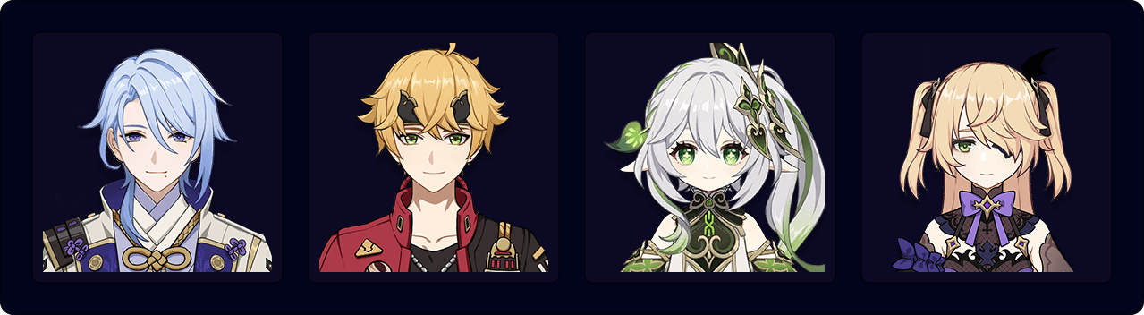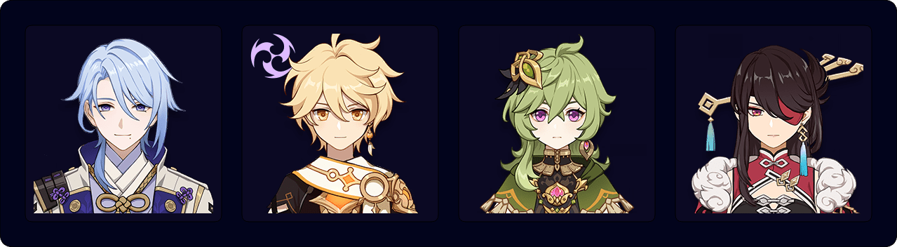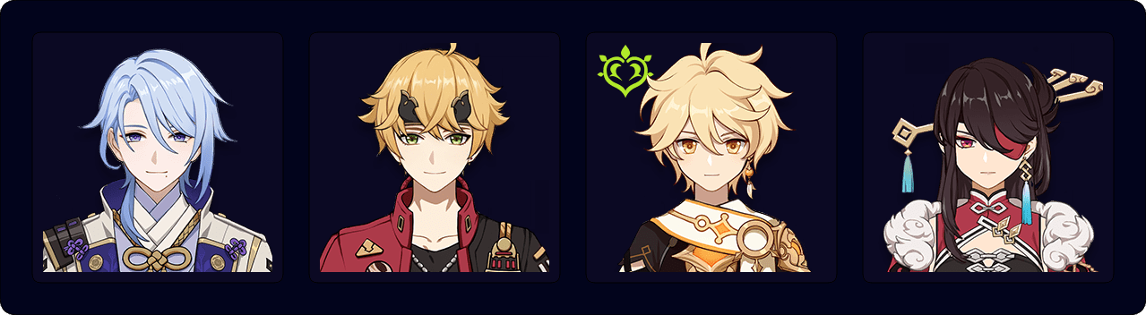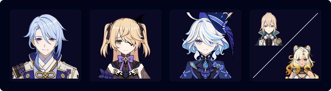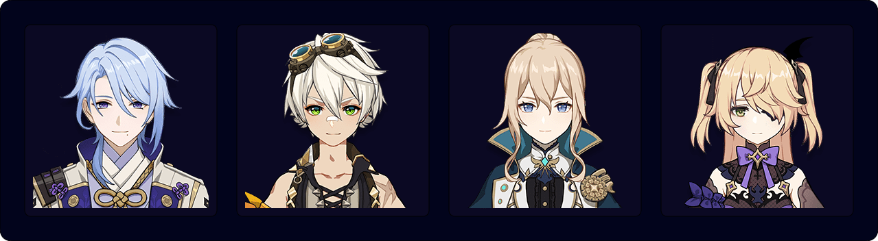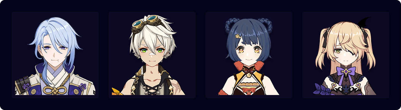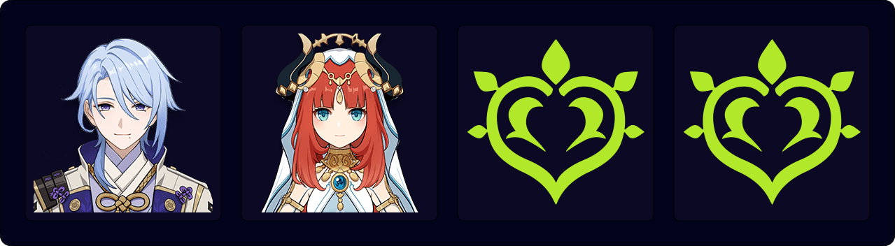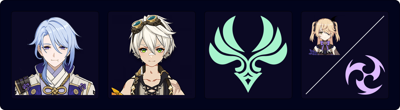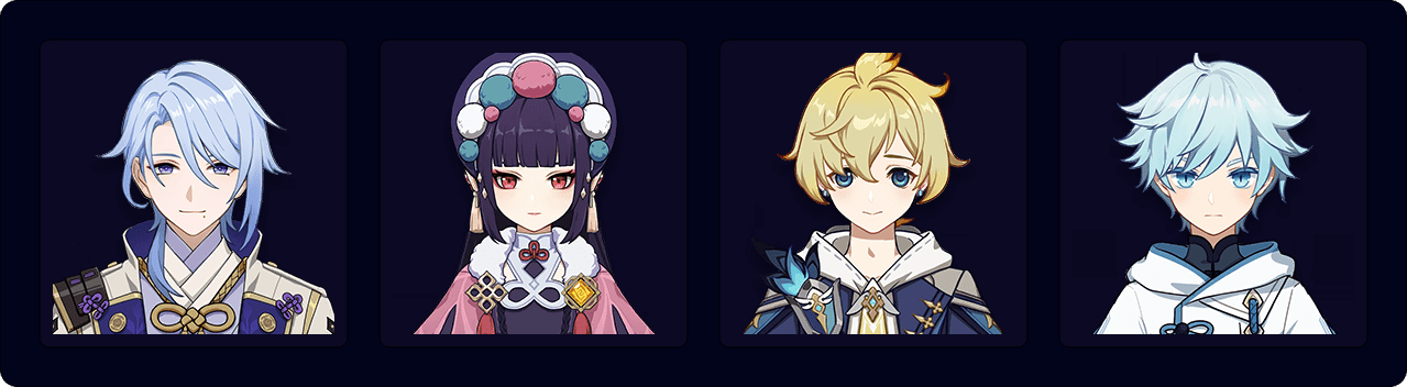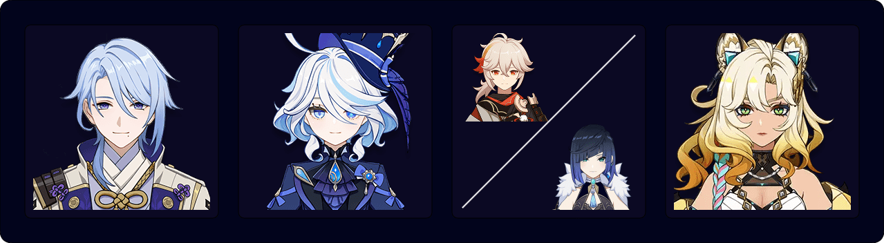 Finally bringing Ayato and Ayaka together in the same team! Unfortunately, Ayato isn’t the best Hydro unit in Ayaka-Ganyu teams compared to Kokomi, Mona, and Furina. Nonetheless, the double quadratic scaling between Ayato and Ganyu’s Bursts lets this team perform well in multi-target scenarios with Freezable enemies.