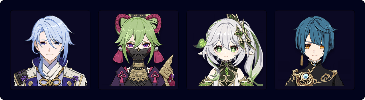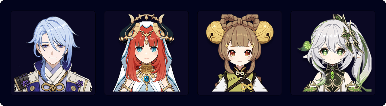 Nahida E (Q) > Bennett Q E > Xiangling Q ED > Ayato E N15 Q > Nahida E > Bennett N1 E > Xiangling N1 ED > Ayato E N15