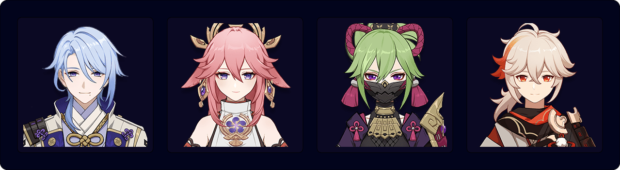 Ayato Q > Shinobu E > Yae 3[E] > Kazuha hEP > Ayato E N15 > Yae Q 3[E] > Shinobu Q (E)[1] > Kazuha hEP Q > Ayato E N15