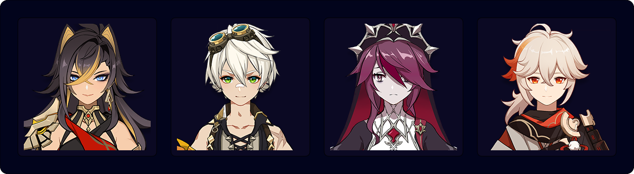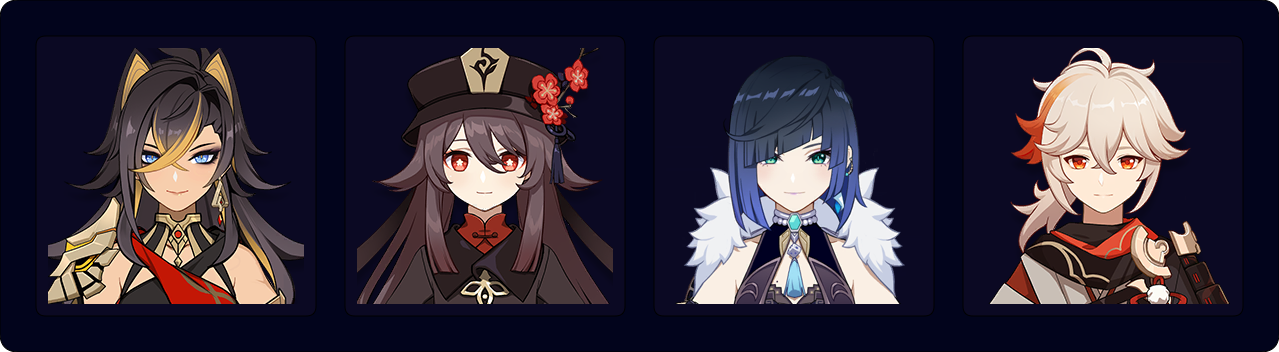 Dehya — Hu Tao — Yelan — Kazuha