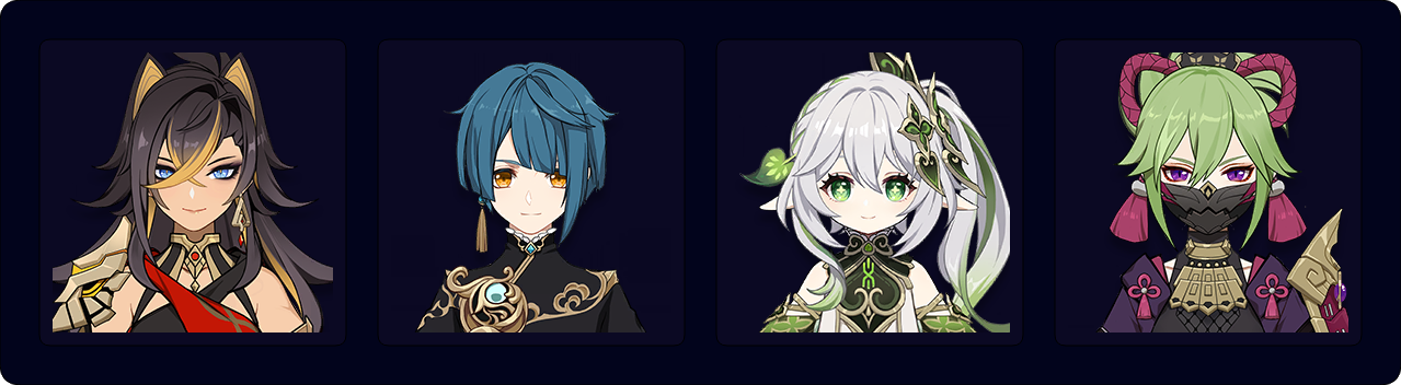 Dehya — Xingqiu — Nahida — Kuki