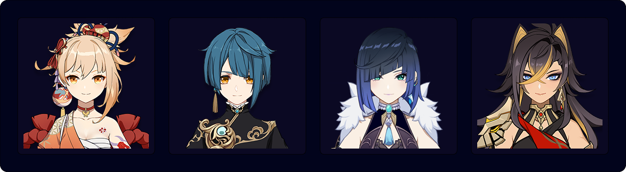 Yoimiya — Xingqiu — Yelan — Dehya