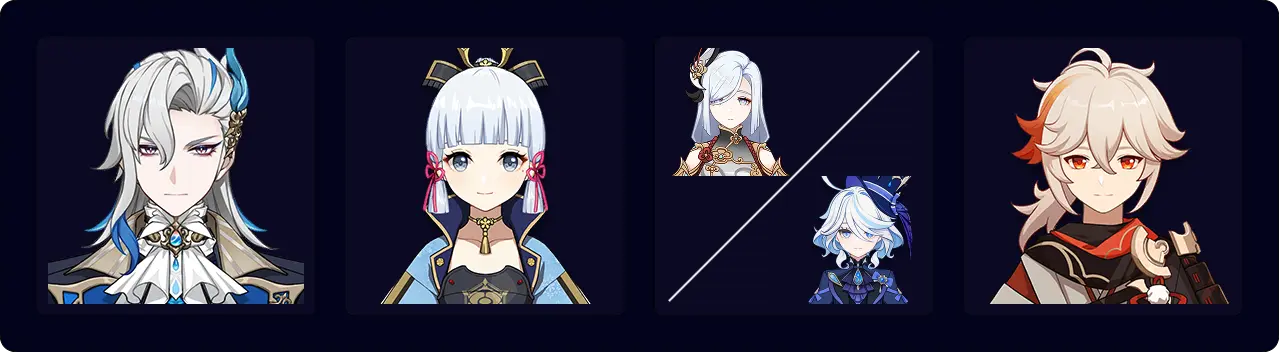 ![]() Ayaka Off-Field Damage | Rating: D- At first glance, Ayaka and Neuvillette have little to no synergy. In regular Ayaka teams, she has extensive field time requirements that clash with Neuvillette’s own, and she prefers teammates that provide her with buffs or utility. Her viability as a teammate stems entirely from her raw damage output and the scarcity of Cryo damage dealers with off-field presence. She is also limited to Freeze teams, specifically the Double Cryo variations. Similar to Ganyu, Ayaka’s ER requirements spike in Neuvillette teams and she should use at least two Skills per rotation to keep them manageable. A second Cryo unit helps with this while offering appreciated buffs for her damage. There are limited ways to gear Neuvillette’s Freeze teammate’s to support him, so with Ayaka they can instead equip Thrilling Tales and 4pc Noblesse or 4pc Tenacity to buff her. If they have access to buffs Neuvillette can take advantage of such as 4pc Days Past, those should still be prioritized. Recommended Gar: Ayaka builds for personal damage. At high enough ER requirements, 4pc Emblem performs similar to 4pc Blizzard Strayer. Notable Investments: Neuvillette’s Freeze teams with Ayaka scale well with investments into her personal damage, but they are just about the worst use possible for a highly invested Ayaka. Similar to Ganyu, her Constellations should not be pulled for Neuvillette’s Freeze teams, and their value is primarily relevant for players who already have a high Constellation Ayaka. For those players, her C2 and C3 are significant damage increases for her Burst, which is her main source of damage. Her C4 also offers a rare source of DEF Shred to boost both her and Neuvillette’s damage. Recommended Playstyles: Freeze – Double Cryo Viable Playstyles: Freeze – Solo Cryo |