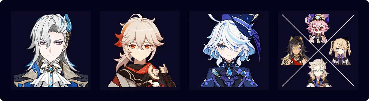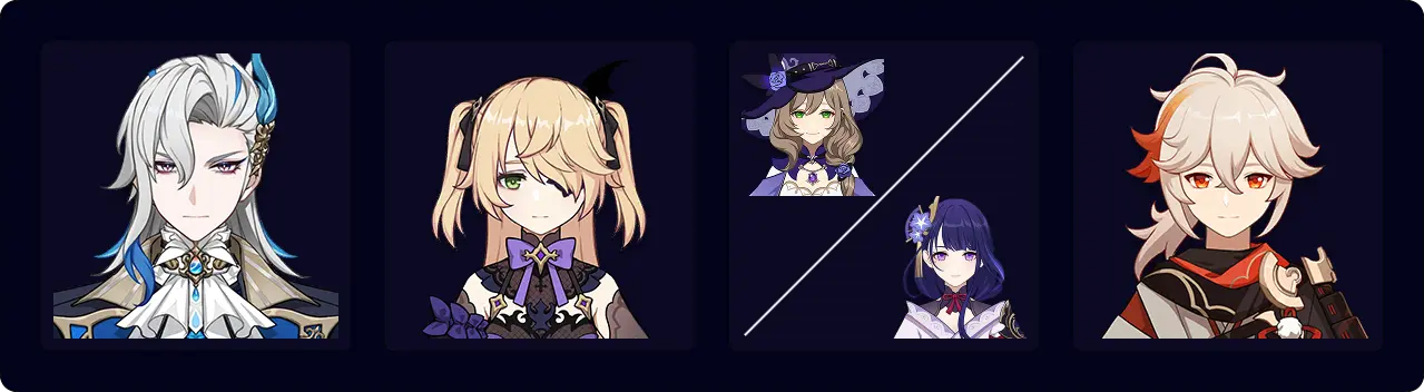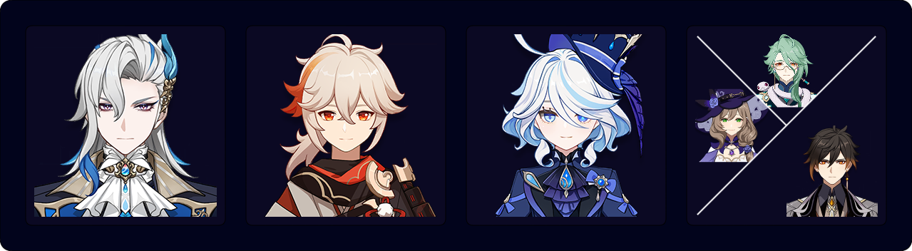 ![]() Furina Buffing / Off-Field Damage / Energy | Rating: S+ Furina is one of Neuvillette’s best supports. She deals significant damage with her long-duration Skill, and the added Hydro application allows for much easier Swirl and Crystallize setups. Her Burst provides a hefty DMG Bonus, stacking up to 75% (at C0, TL10) with HP changes. Neuvillette’s massive HP fluctuation lets him fully stack the buff on his own, providing him the freedom to choose whether to run a healer or not depending on player comfort and teammate options. Furina also lowers his ER requirements and enables Hydro Resonance for HP% that benefits them both. While going healerless sacrifices some of Furina’s personal damage, the trade-off becomes worth it if the alternative is a synergistic support to further buff Neuvillette. Furina’s sizable damage is still less than Neuvillette’s, so exchanging some of her damage to increase his is generally worthwhile. However, keep in mind that the choice of running a healer is not a clear cut damage increase/decrease for Furina. Forgoing a healer to slot in Kazuha offers just as many buffs to Furina as to Neuvillette. This reduces the damage lost, and makes swapping a healer for a stronger buffer even more of a non-issue in Neuvillette teams. Of course, if players lack other strong supports to buff Neuvillette, it is recommended to bring a healer to increase Furina’s Fanfare stacks. For many, exchanging a bit of the team’s hefty damage for a more comfortable playing experience is also preferable. Recommended gear: Furina builds for personal damage. Key of Khaj-Nisut gains added value if Neuvillette (or a teammate) benefits from its EM buffs. Furina can hold Favonius Sword in teams with very high ER requirements, but this is rarely optimal. Notable investments: Furina’s early Constellations are all excellent boosts to the damage output of Neuvillette’s teams. For higher spenders looking to invest into his teams, Furina’s C1-C3 are strong options. See the FAQ for details on how investing into Furina’s Constellations compares to investing into Neuvillette’s Constellations for team DPS. Recommended Playstyles: Hypercarry / Electro-Charged / Vaporize / Hyperbloom / Freeze |