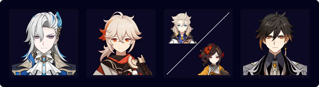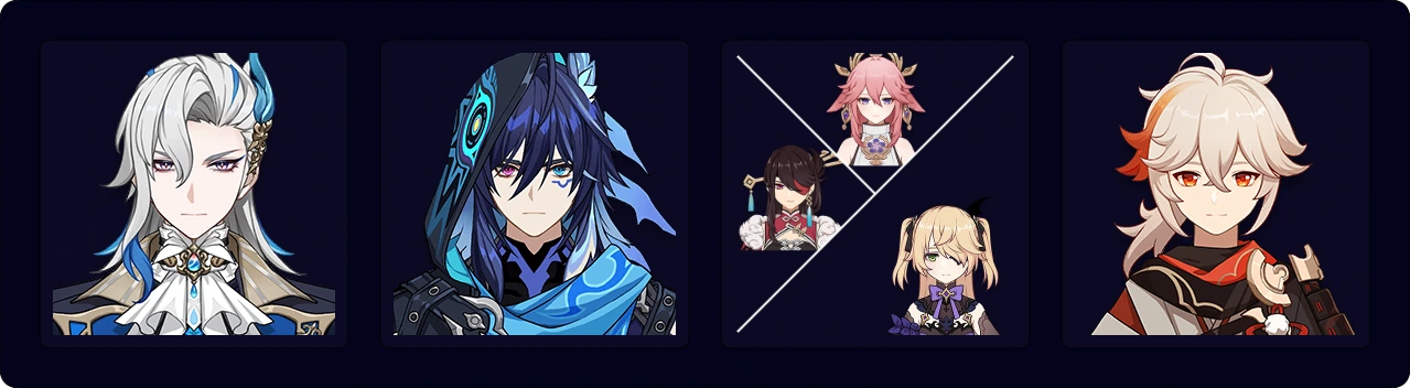 ![]() Ayato Buffing | Ayato offers the bare minimum of enabling Hydro Resonance for HP%. He lacks any buffs or utility to compete with other Hydro options in Neuvillette’s hypercarry teams, but gains some value in teams that benefit from his off-field Hydro application. Recommended Gear: Favonius Sword and ER% to Burst regularly. Ayato should also equip 4pc Scroll if he can reliably trigger it. Viable Playstyles: Hyperbloom / Vaporize – Burnvape with Xiangling |