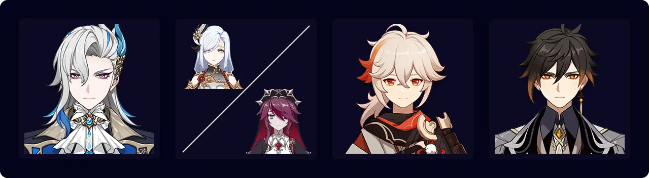 ![]() Albedo Off-Field Damage / Buffing | Rating: B (Vaporize) / C (other teams) Albedo’s respectable personal damage lets him slot into Neuvillette teams as an offensive flex. His low field time requirements and his Skill’s long duration fits unobtrusively into Neuvillette’s rotations, and he is rarely a contested unit. He both does well in Solo Geo teams and is one of the better picks for Neuvillette’s Double Geo teams. Note that he can run into issues with enemies breaking his flower, so consider positioning it to avoid this. In teams that benefit from EM, his Burst also provides a 125 EM buff if the rotation can accommodate it. Despite dealing decent damage, it is still worth sacrificing Albedo’s DPS to equip Favonius Sword if it lets Neuvillette build more offensive stats. As a Geo character, Albedo can also hold 4pc Archaic Petra, but he is a worse holder than most. In addition to the set's standard caveats, Albedo can struggle to generate Hydro Crystallize shards in the first place if his flower breaks. Players who prioritize min-maxing and are aware of the set’s issues can still opt to use it. Recommended Gear: Favonius Sword. Players willing to deal with the caveats can equip 4pc Archaic Petra; otherwise, equip 4pc Scroll. Notable Investments: None of Albedo’s Constellations are worth pulling for Neuvillette teams. For players who have it, his C2 makes his Burst more valuable in teams that benefit from the EM buff. Recommended Playstyles: Hypercarry / Vaporize / Hyperbloom / Electro-Charged / Freeze |