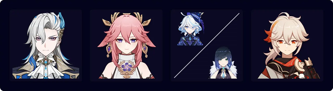 ![]() Yae Miko Off-Field Damage | Rating: B (Electro-Charged) / C (other teams) Much like Fischl, Yae Miko lacks direct ways to buff Neuvillette and instead compensates by dealing personal damage. The totems’ low cooldown, long duration, and inability to snapshot give her appreciated rotation flexibility. Their Electro application is also limited, which lets her stack Neuvillette’s A1 without interfering much with Swirl or Crystallize setups in teams where he is the solo Hydro unit. Although Yae Miko can hold Hakushin Ring to buff Neuvillette, it is rarely worth the damage trade-off, and she is better off focusing on personal DPS. Compared to alternatives like Fischl, Yae Miko has higher field time requirements, but this is significantly reduced if she forgoes her Burst. Despite being a decent nuke, the value of her Burst diminishes if it extends the rotation or interrupts Neuvillette’s field time. Bursting every rotation as the sole Electro unit also leads to high ER requirements. Note that if she opts to Burst every other rotation, this can lead to issues if her Burst is used to fill time. A recommended solution is alternating between Q 3[E] and 3[N1 E], weaving Normal Attacks to fill the time that would otherwise be filled by her Burst. Recommended Gear: Yae Miko builds for personal damage. Hakushin Ring and 4pc Scroll are possible but rarely, if ever, better. Notable Investments: Most of Yae Miko’s Constellations are significant increases to her Skill damage, which is her main contribution in Neuvillette teams. However, investing into Yae Miko loses value in teams centered around Neuvillette (e.g., hypercarry teams). The more highly invested Neuvillette is, the more valuable invested support units become – even beating the value of a well-invested Yae Miko. Her C1 is also conditional: it lets her Burst more regularly but is wasted if her Burst extends the rotation. Recommended Playstyles: Hypercarry / Electro-Charged / Hyperbloom / Vaporize – Burnvape Xiangling Viable Playstyles: Vaporize – other variants / Freeze |