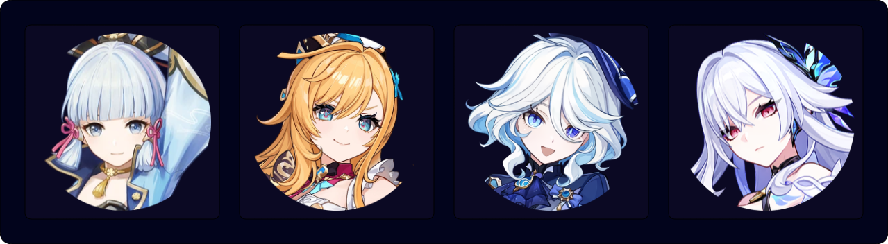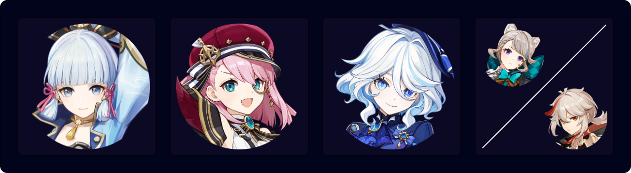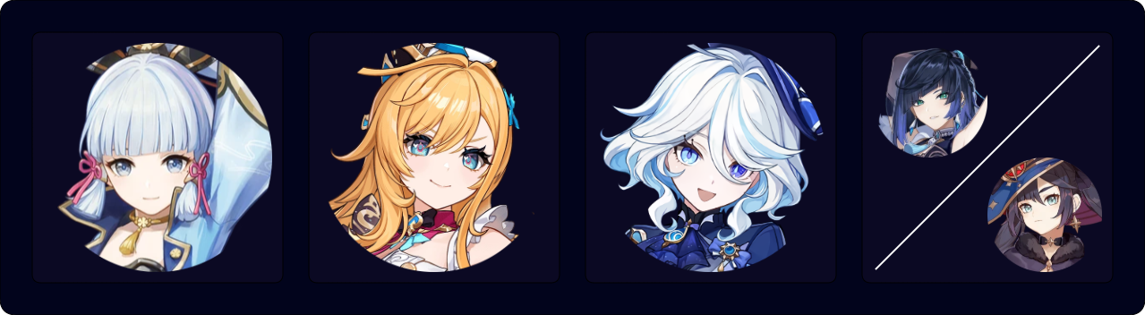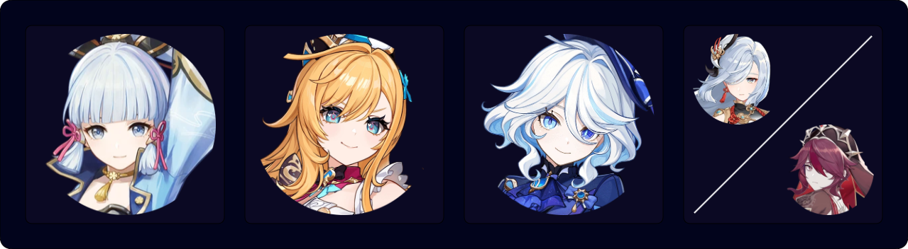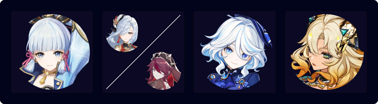 ![]() Furina | Furina provides constant off-field Hydro application to keep regular enemies fully Frozen, but on her own she is not enough for Freeze-resistant enemies. Through her Burst, she provides a powerful DMG% buff and enables 4pc MH for Ayaka. Also, Furina can hold support sets like 4pc Tenacity of the Millelith. Note that Furina’s DMG% Bonus cannot snapshot, so it is not terribly detrimental to use Ayaka’s Elemental Burst when Fanfare is low. |