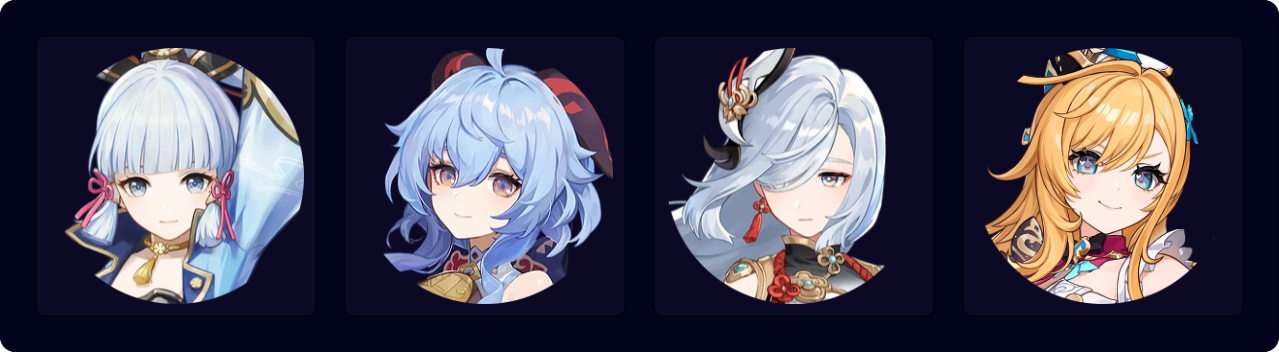 A Mono Cryo team featuring Bennett and Kazuha. Ayaka’s Burst can snapshot Bennett’s high Flat ATK buff.