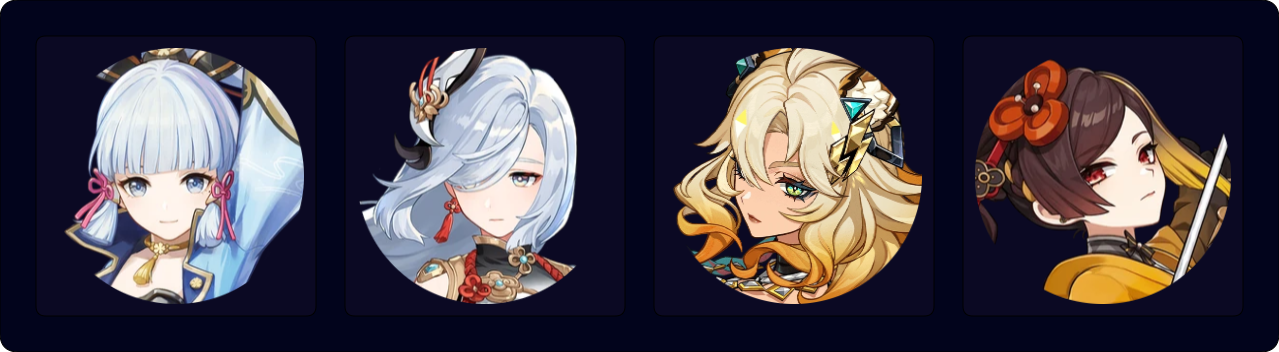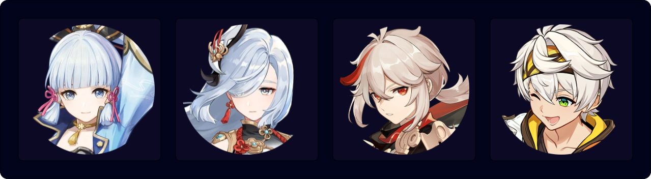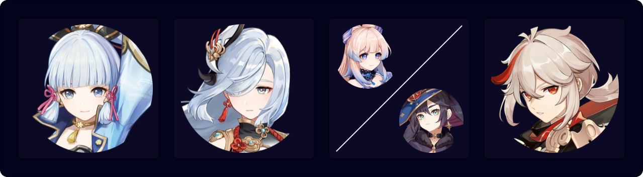 (Ayaka D)¹ > Kazuha tEPQ > Shenhe tEQ > Mona Q E > Ayaka ED (N1)2 Q N2C > Kazuha tE3 > Shenhe tE N1 > Ayaka D 2[N2C] ED N2C