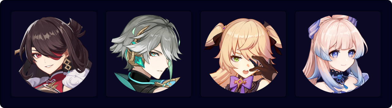 ![]() Jean | ![]() Sayu | ![]() (★ C6) Lynette | ![]() Xianyun | ![]() Anemo Traveler |