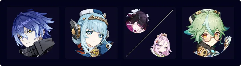 This Ineffa-less team uses an Electro buffer to maximize Flins’s personal damage. If necessary, Sucrose can be replaced with a sustain unit like Lan Yan, Jean, or Xilonen.