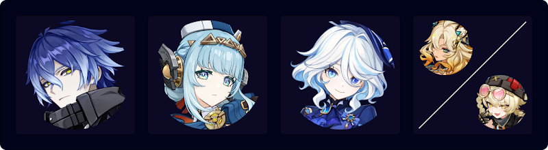 ![]() Furina | While Furina’s Skill cooldown is 20s, she can use it once every other rotation thanks to its 30s uptime; this allows the team to run a 16s rotation. A healer helps generate Fanfare, but since the vast majority of Flins’ damage does not benefit from Elemental DMG Bonus, a teammate with better buffs (e.g., Sucrose) is generally better over a healer like Xilonen or Jean. |