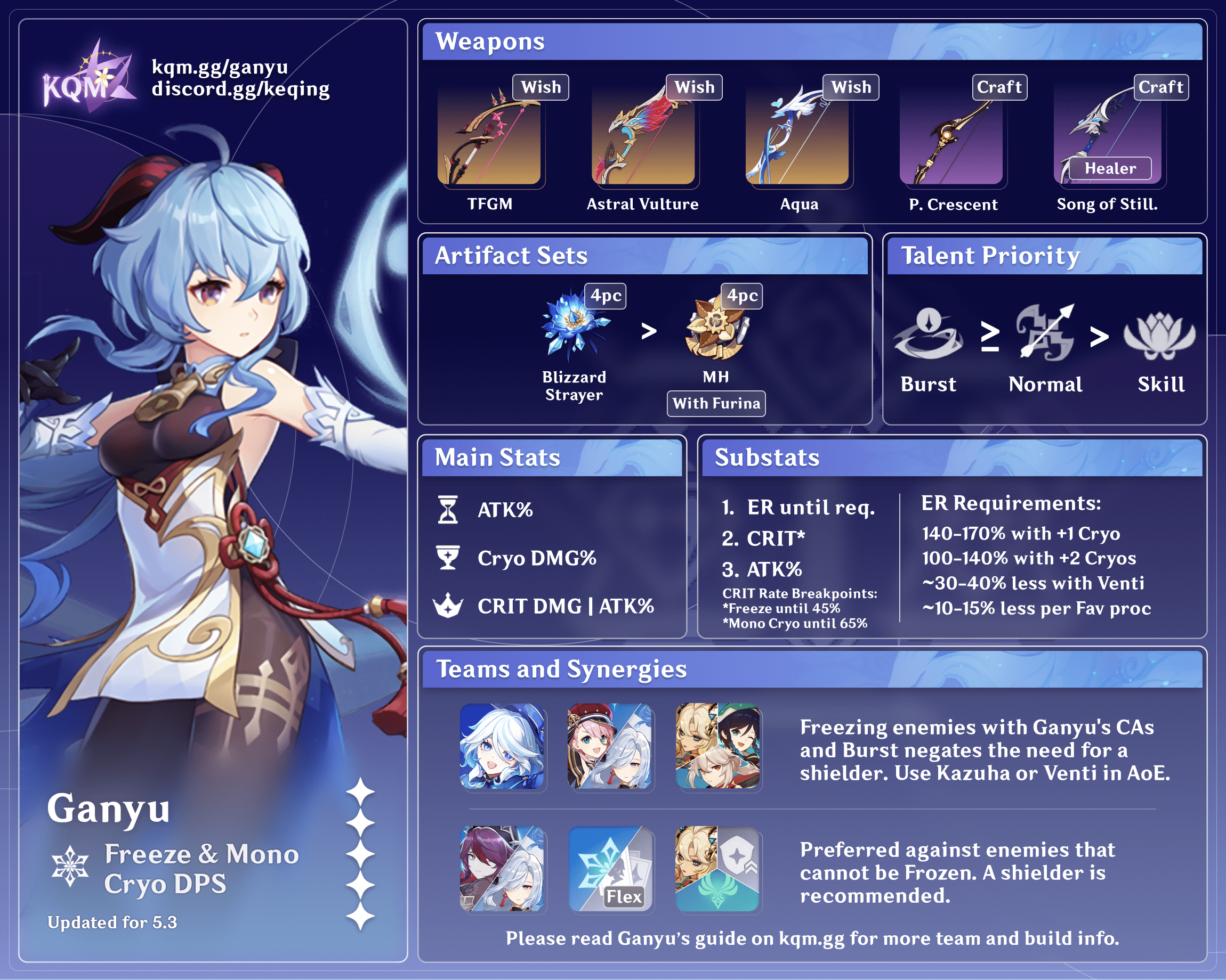 | ATK% | Cryo DMG Bonus | CRIT or ATK%* |