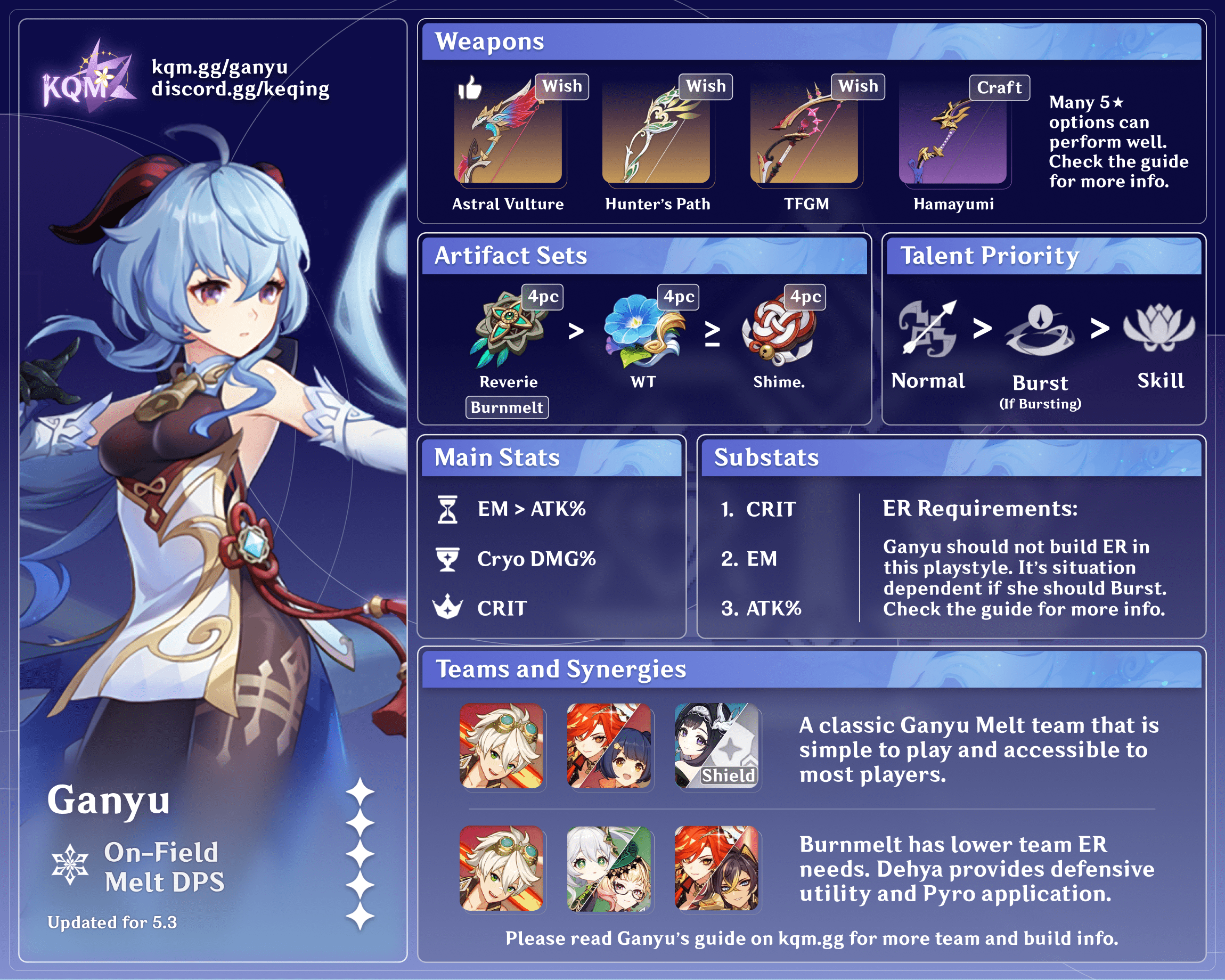 Overall, while Burning is the second most recommended Melt Ganyu team variant, it is highly unstable to play.