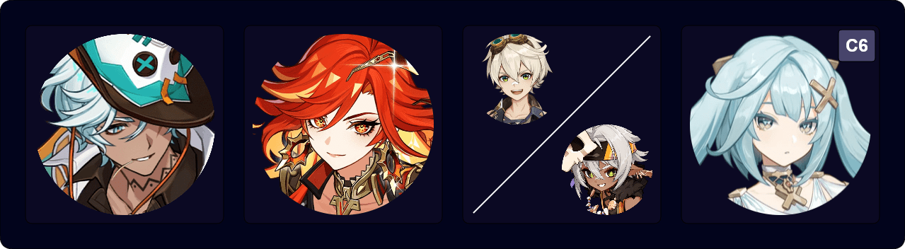 Another Ifa-centric team that utilizes Ifa’s Nightsoul point consumption to gain Mavuika’s Fighting Spirit, which her personal damage and A4 buff. Faruzan has rather dire ER requirements without C6 and should hold 4pc Scroll to buff both Ifa and Mavuika.