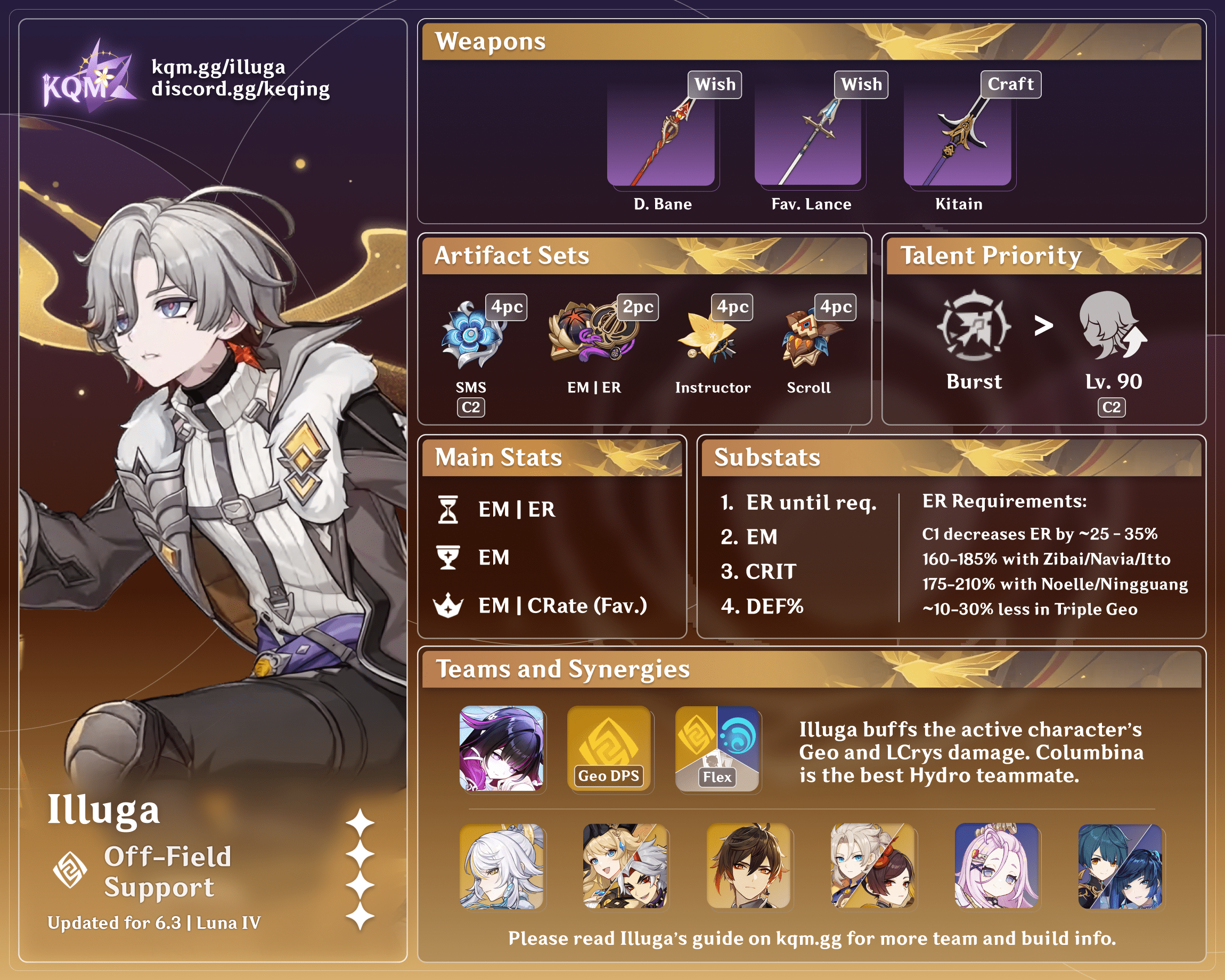 - Illuga requires at least 2 Geo or Hydro teammates to maximize his A4 Passive.
