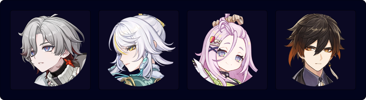 Illuga is tailor-made for Zibai. He buffs both Geo and direct Lunar-Charged damage, and his 15s cooldowns easily fit into any team rotation. Columbina is the ideal Hydro slot, but another off-field Hydro applier can work. The last slot can be another Geo character, a Hydro character, or a defensive support with a low rate of Elemental application.