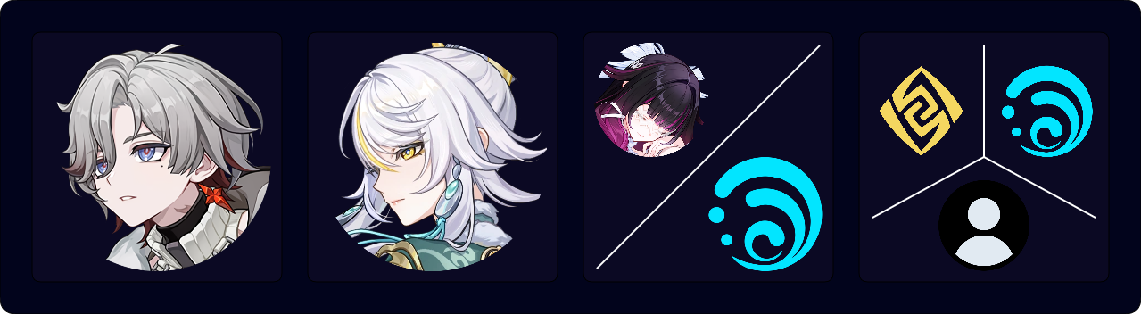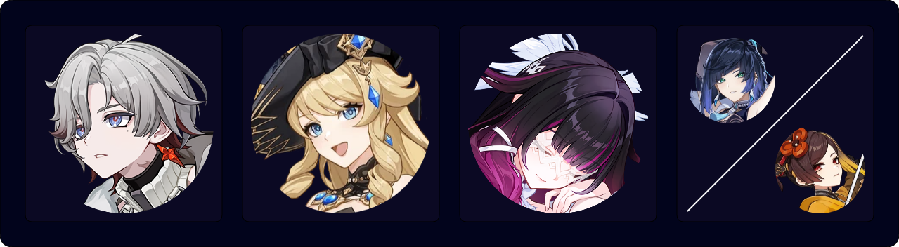 Yelan and Aino provide supplemental off-field damage or additional utility. They also help lower Columbina’s ER requirements.