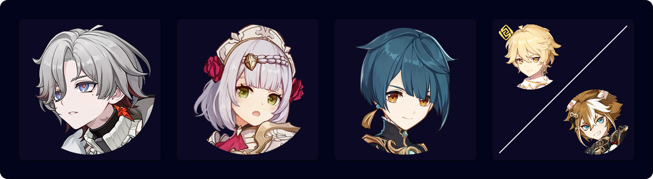 This team focuses on Noelle’s personal damage, with Xingqiu as an off-field DPS. Geo Traveler is a freely accessible option who creates Geo Constructs and deals fine personal damage, but Gorou (especially C6) provides stronger buffs to Noelle’s personal damage.