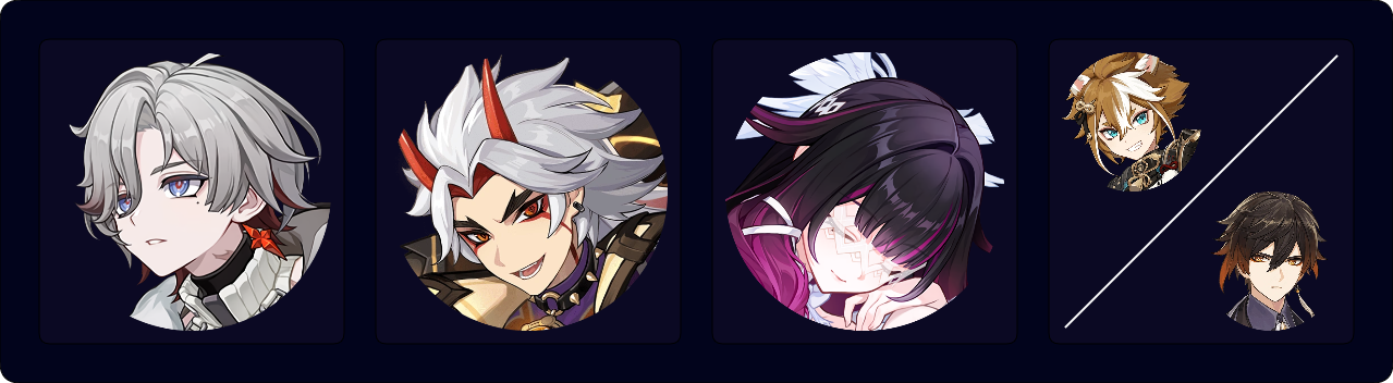 These teams are among Zibai’s highest-performing options with Columbina as the sole Hydro teammate. C6 Gorou performs similarly to Zhongli and Chiori, and is worse than them without his C6. C2 Xilonen is by far the best option for team DPS if you have her.