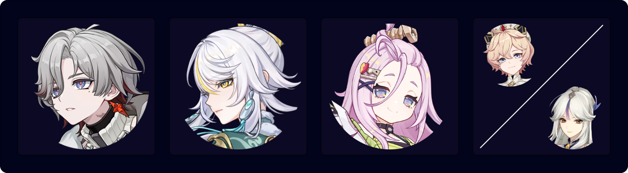 Columbina ★ | Columbina provides great off-field Lunar-Crystallize damage and Hydro application. She typically holds 4pc Aubade of Morningstar and Moon if (C2+) Illuga already uses 4pc SMS. One of her best free-to-play weapons is R5 Prototype Amber, which lets Zibai forgo a dedicated defensive teammate. |