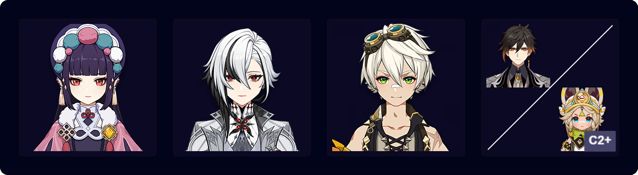Arlecchino’s high multipliers benefit less from an Additive Base DMG Bonus to her Normal Attacks. Nonetheless, Yun Jin still buffs her and makes up a comfortable Double Geo core alongside Zhongli or a character that generates Crystallize shields. Due to Arlecchino’s preference for shorter rotations, Kachina’s C2 is required to bypass her long Elemental Skill cooldown.