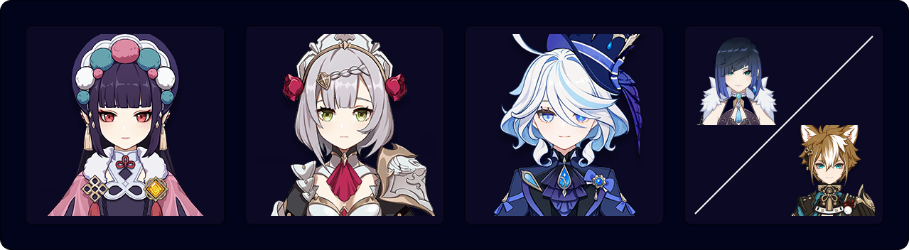 While Noelle has very slow Normal Attacks, her AoE is very large, allowing her to efficiently benefit from Yun Jin’s Additive Base DMG Bonus in multi-target scenarios. Due to low Geo Particle generation, Yun Jin and Gorou should swap to use their Elemental Skills and funnel their particles to Noelle. This team is great for showcasing high damage numbers on Noelle.