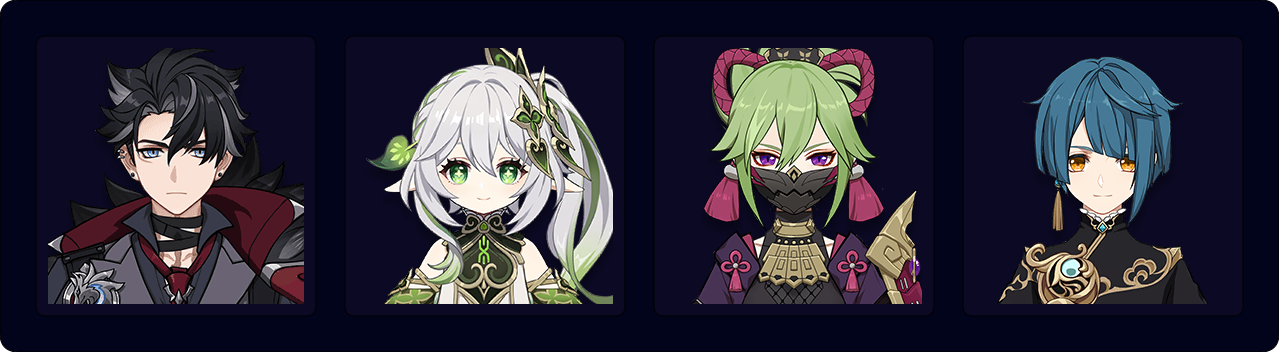 Нахида, Синобу и Син Цю составляют сильное ядро Вегетации, действующее вне поля и наносящее большое количество урона. Син Цю можно заменить на Е Лань или на Кокоми, но так Дендро ядер станет меньше. С Кокоми также можно будет заменить Синобу на Райдэн.