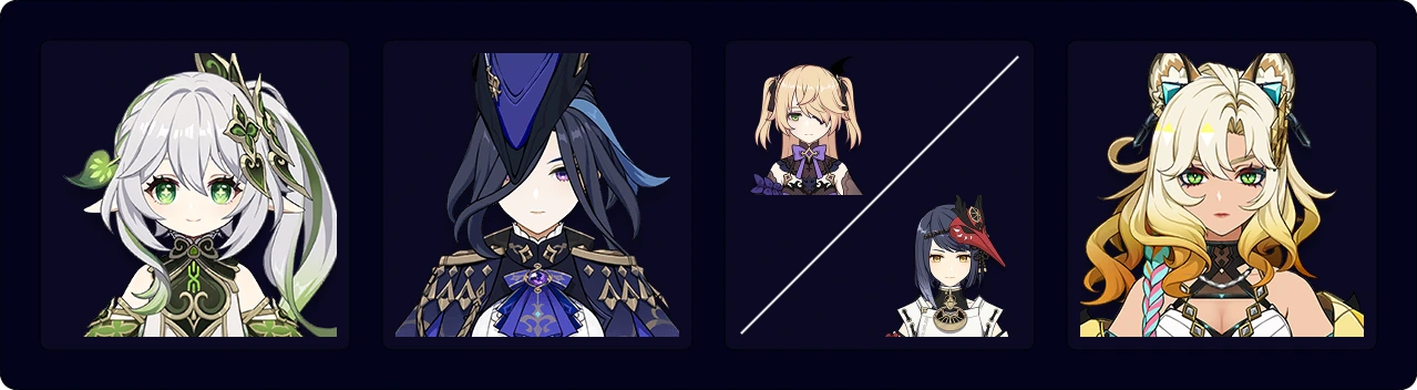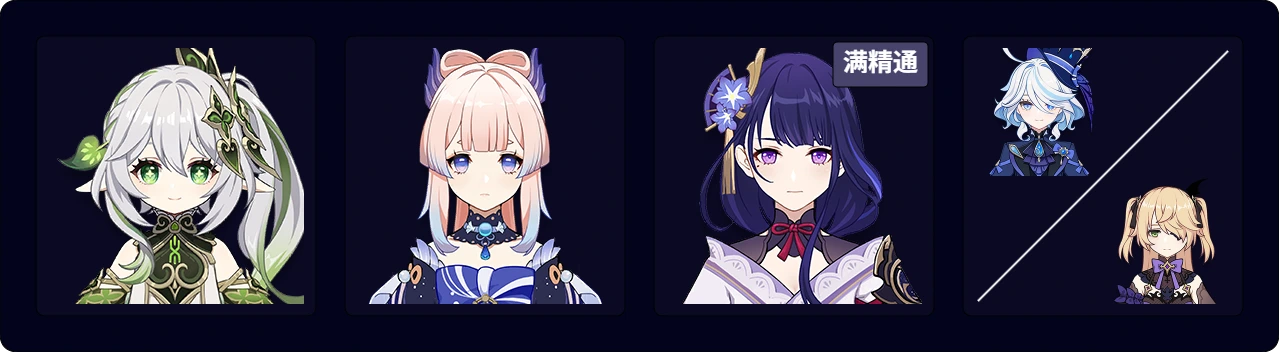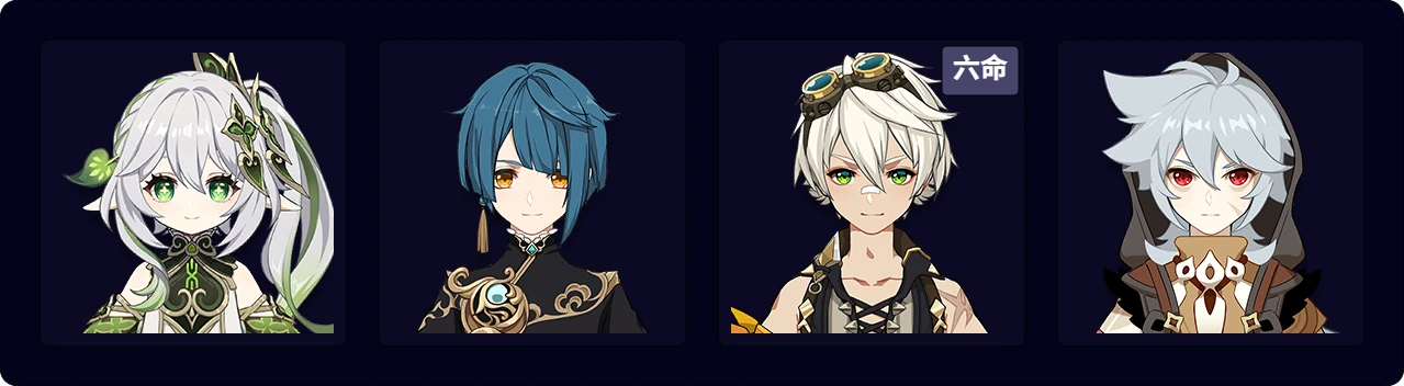 ![]() 艾尔海森 | ![]() 绮良良 | ![]() 柯莱 | ![]() 草主 | ![]() 卡维 |
